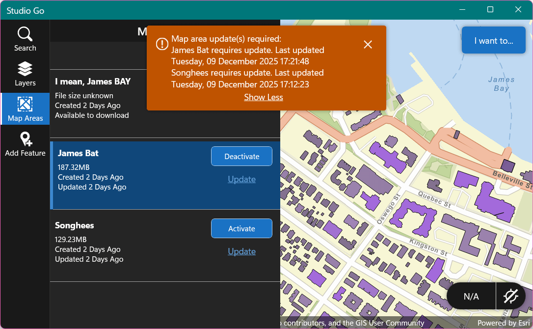 In this example, we display it at the 'warning' level. You could add some logic that displays an 'info' level notification if their map areas are only a few days stale and a 'warning' level for older ones, or display a more obvious alert rather than just a notification, etc.