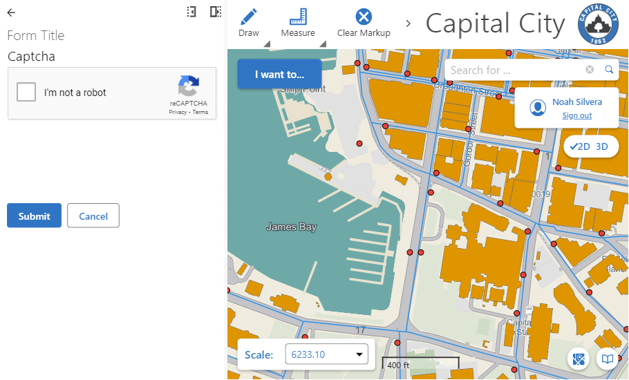 Once your activity pack is hosted and registered, your Captcha custom form element should appear in the form element toolbox in VertiGIS Studio Workflow Designer alongside the built-in form elements.